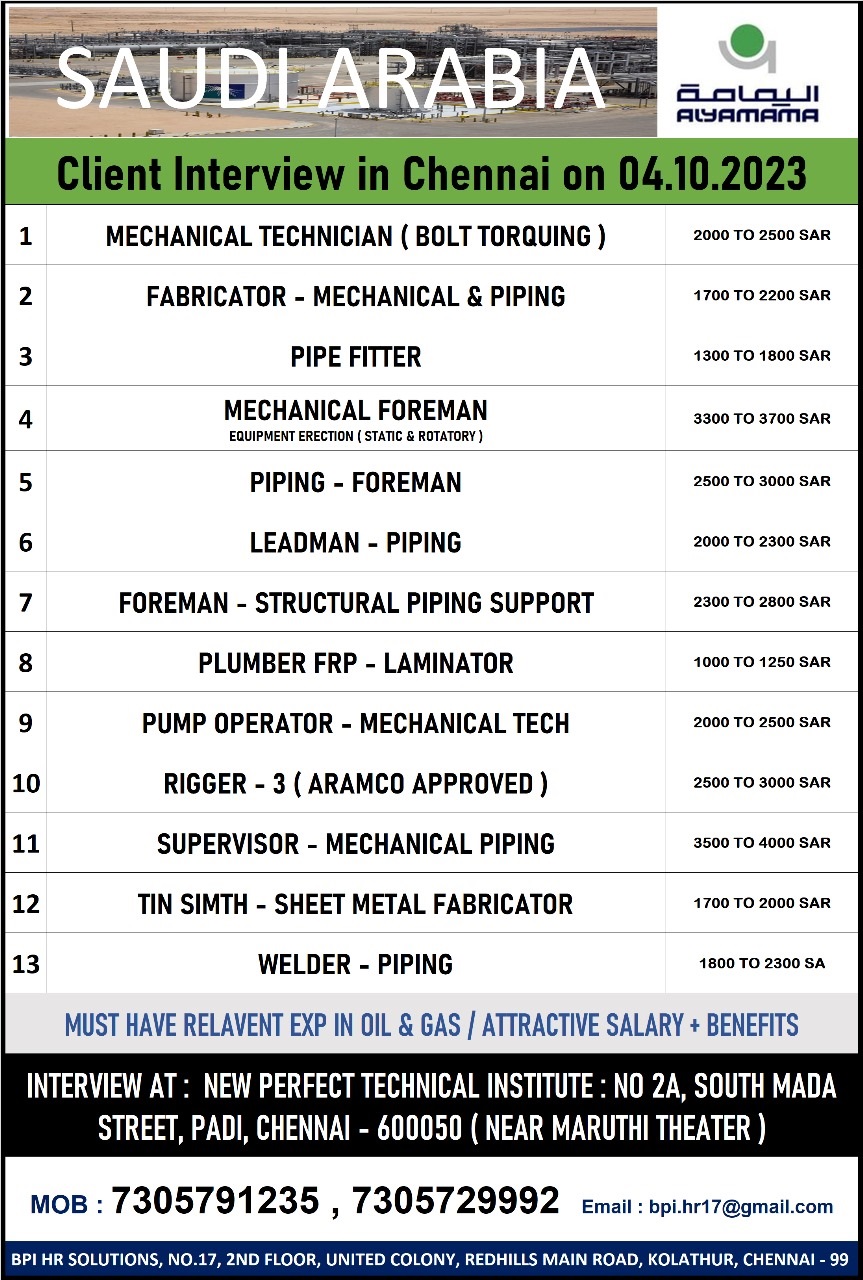 | Welder - Piping | 2300 SAR |