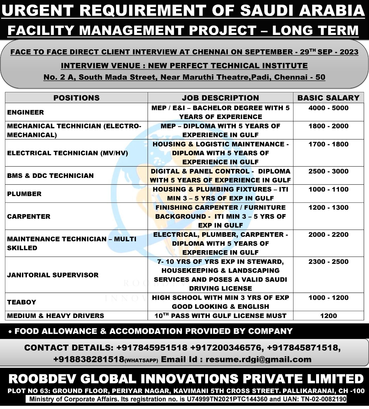 | Mechanical Technician - Electro Mechanical | 2000 SAR | |