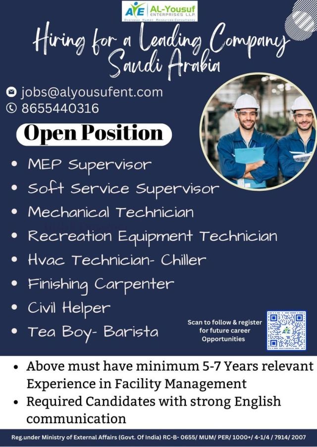 Email : jobs@alyousufent.com / Contacts : 8655440316
