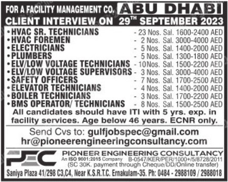 Email : gulfjobsspec@gmail.com / hr@pioneerengineeringconsultancy.com / Contacts : 0484-2988109, 2988018