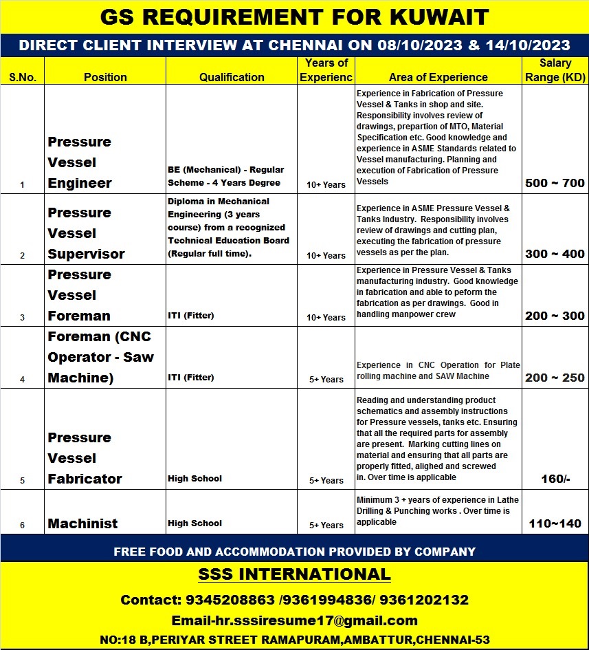 Email : hr.sssiresume17@gmail.com / Contacts : 9345208863, 9361994836, 9361202132