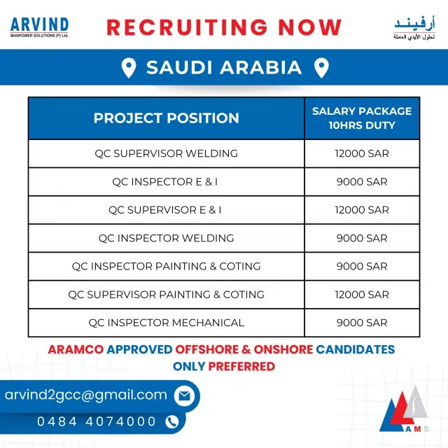 QA/QC jobs in Saudi Arabia - Aramco Project