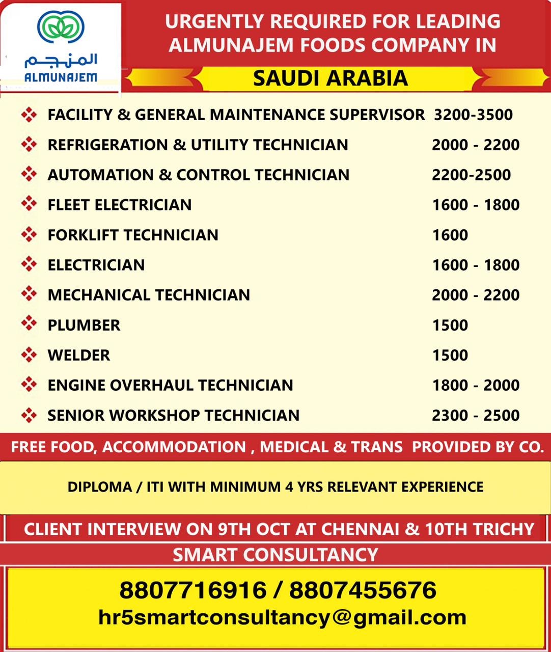 | Refrigeration & Utility Technician | 2200 SAR | |