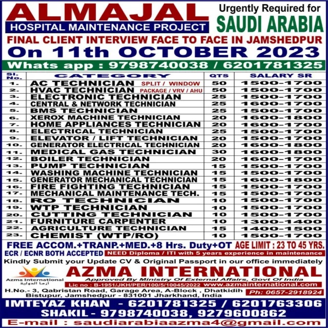 Email : saudiarabiaazma4@gmail.com / Contacts : Imteyaz Khan : 6201781325, 6201763306, 9798740038, 9279600862