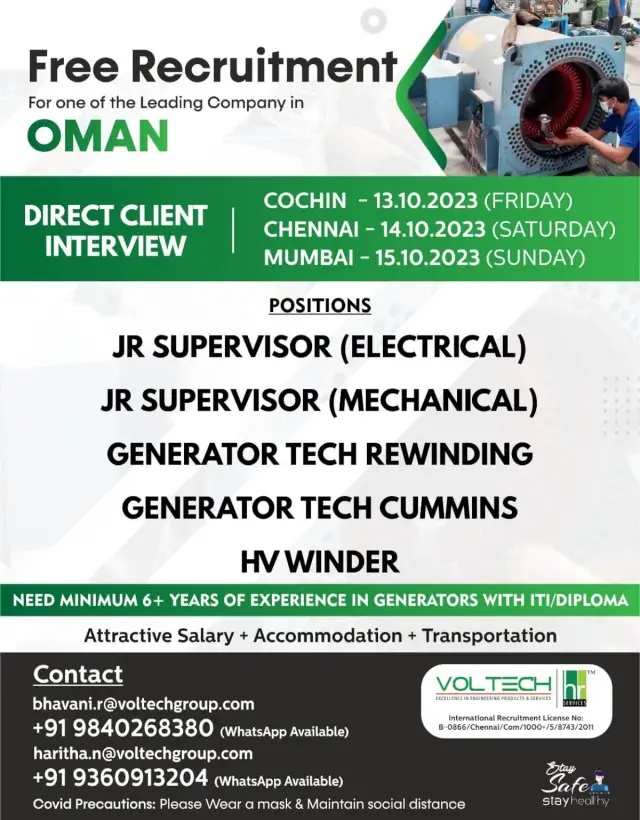 Email : bhavani.r@voltechgroup.com / haritha.n@voltechgroup.com / Contacts : 9840268380, 9360913204