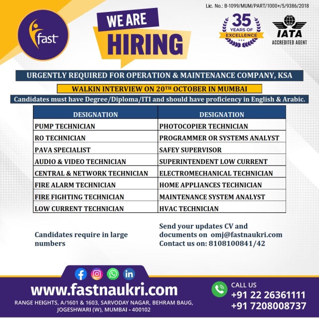 Operation & Maintenance Company - Hiring for Saudi Arabia