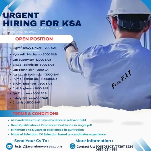 Email : hr.jsr@jayambeoverseas.com / Contacts : 9065033031, 7739118224, 0657-2914661