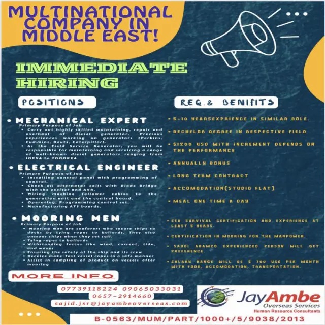 Wanted for Middle east - Multinational Company