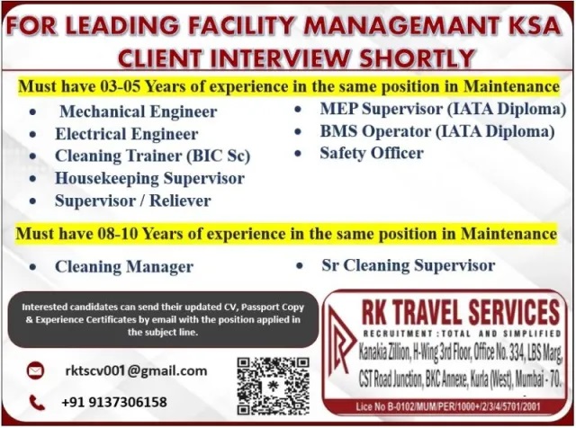 Wanted for KSA - Facility Management Company