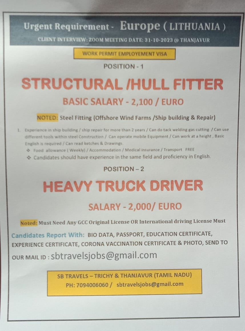 Email : sbtravelsjobs@gmail.com / Contacts : 7094006060