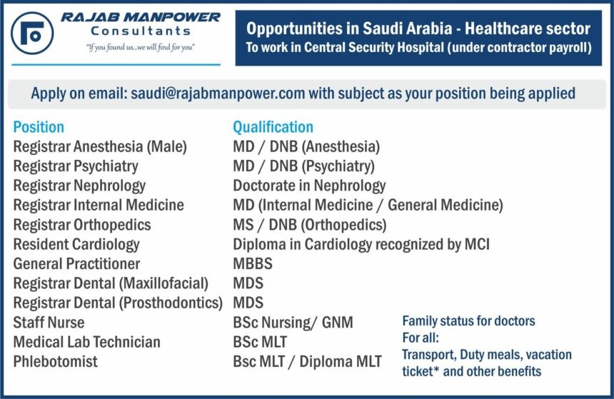 Medical Jobs in Saudi Arabia 2023 - Large recruitment