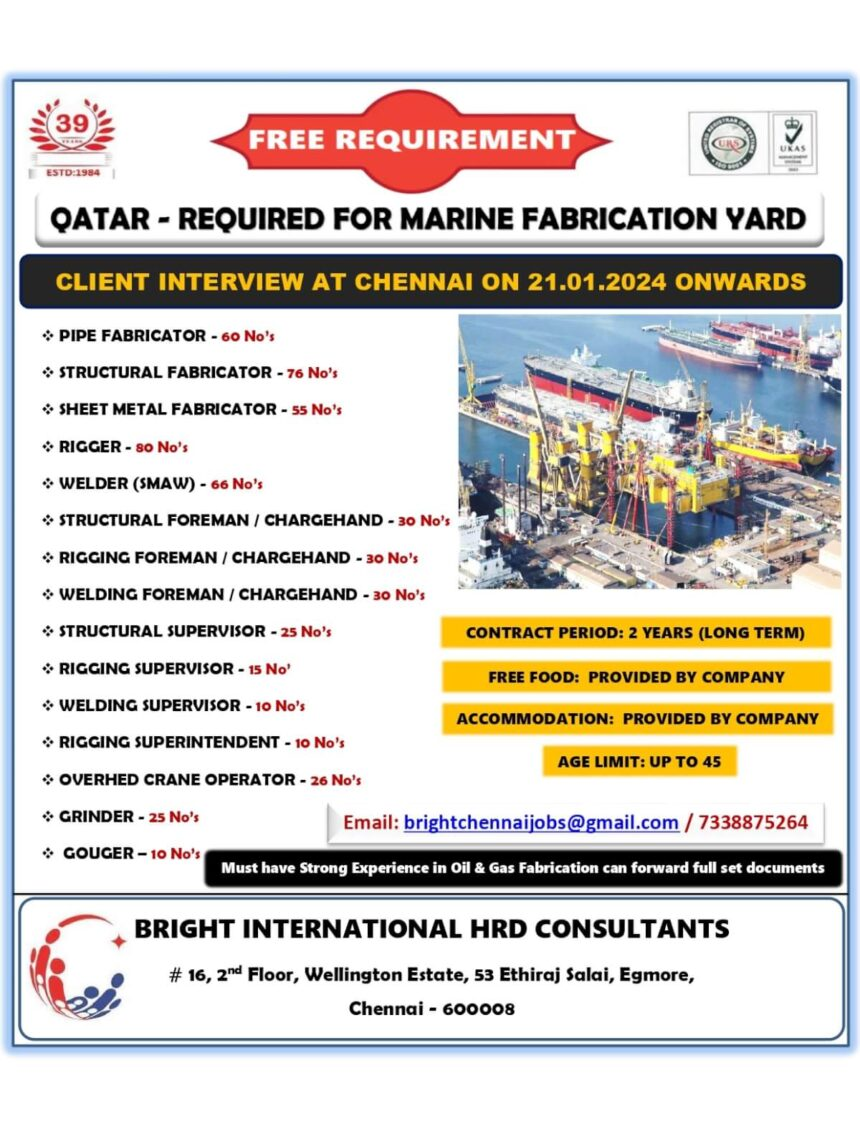 Must have Strong experience in Oil & Gas Fabrication. Age Limit Upto 45 years.