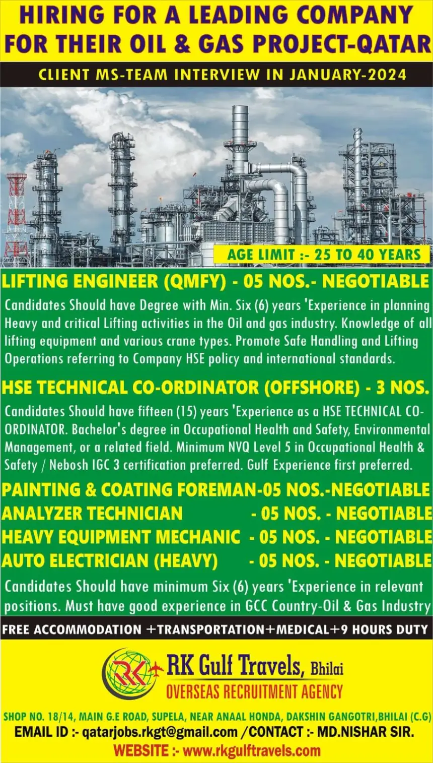 Candidates should have minimum six years experience in relevant positions. Must have good experience in GCC Country Oil & Gas Industry.