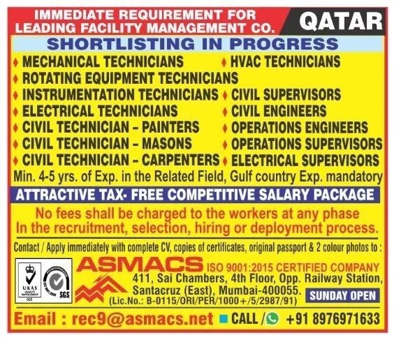 Email : rec9@asmacs.net / Contacts : 8976971633
