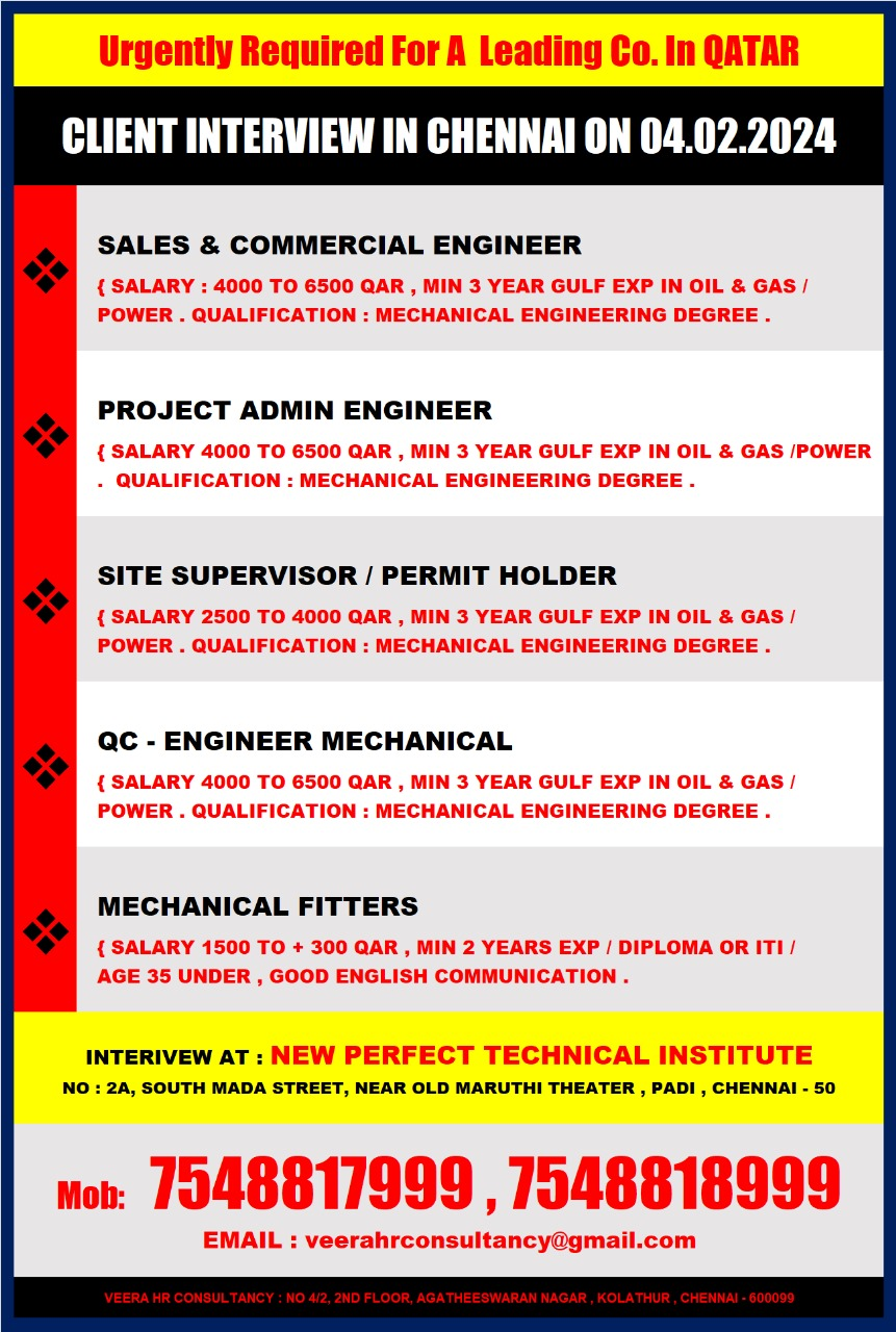 Disclaimer:- GCCWALKINS have no involvement in any recruitment process, This website just sharing job vacancies & interviews from various sources. Applicants are advised to research the bonafides of the prospective employer independently. We do NOT endorse any requests for money payments and strictly advice against sharing personal or bank related information. If you suspect any fraud or malpractice, email us at gccwalkins@gmail.com