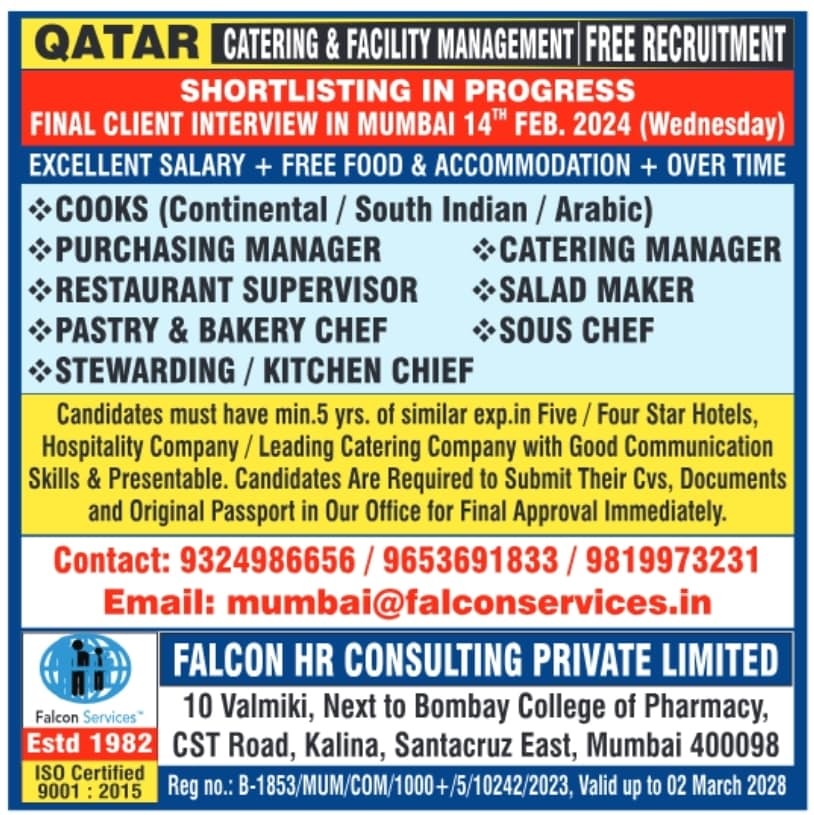 Catering Jobs in Qatar 2024 - Free recruitment