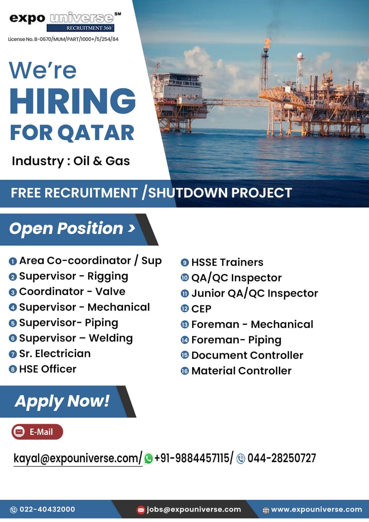 Free recruitment to Qatar - Oil & Gas Shutdown Project