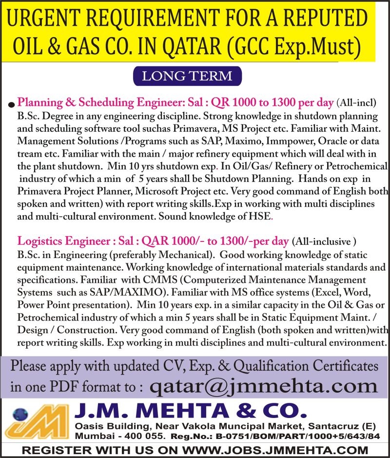 Above all Candidates Qualifed in respective discipline and having relevant experience in similar industry need to apply. GCC Experience must.