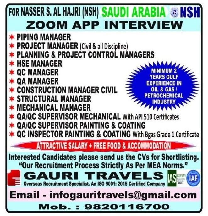 Minimum 2 years Gulf experience in Oil & Gas Petrochemical Industry.