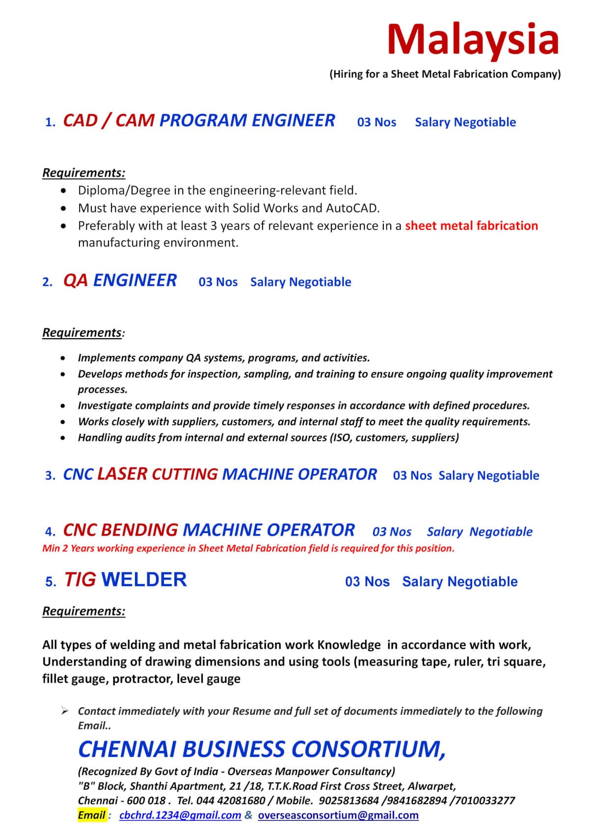 CAD/CAM Program Engineer | 03 | Negotiable |