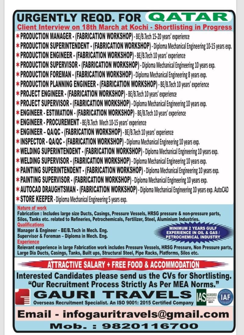 Urgently required for Qatar - Client Interview
