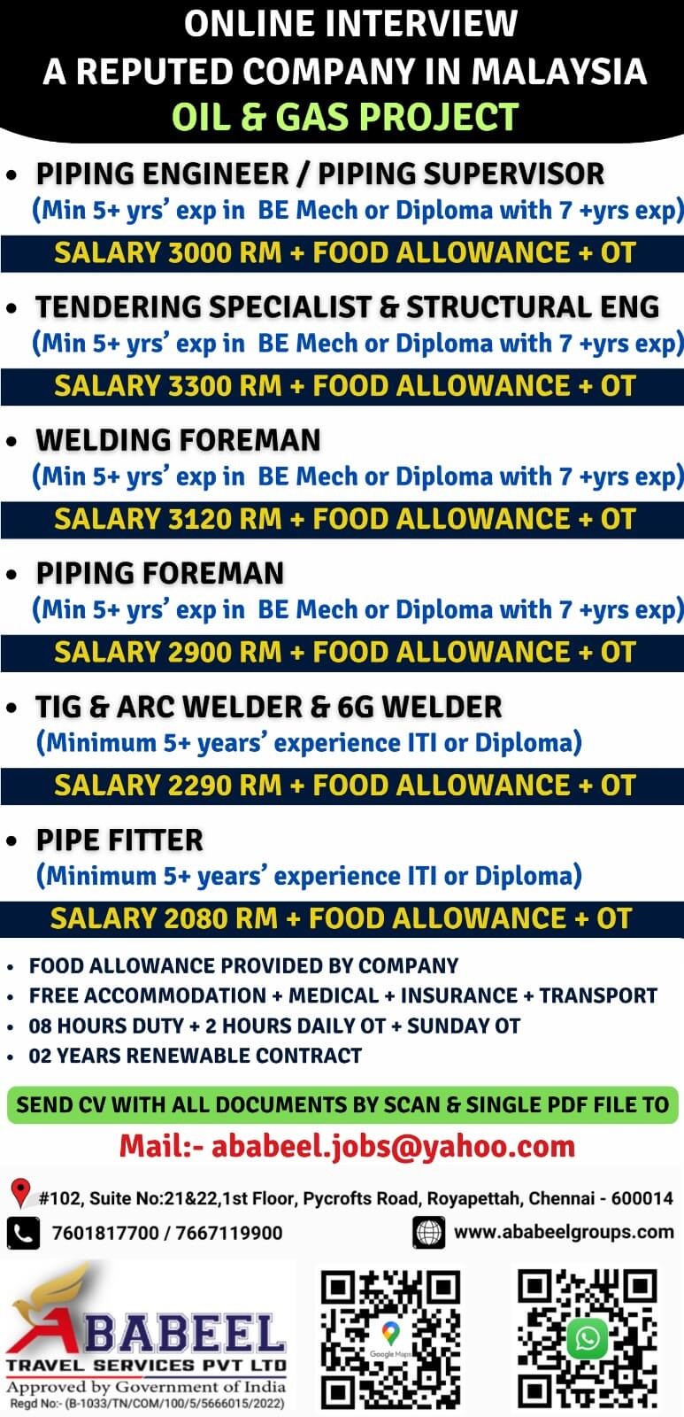 | Piping Engineer/Piping Supervisor | 3000 RM | |