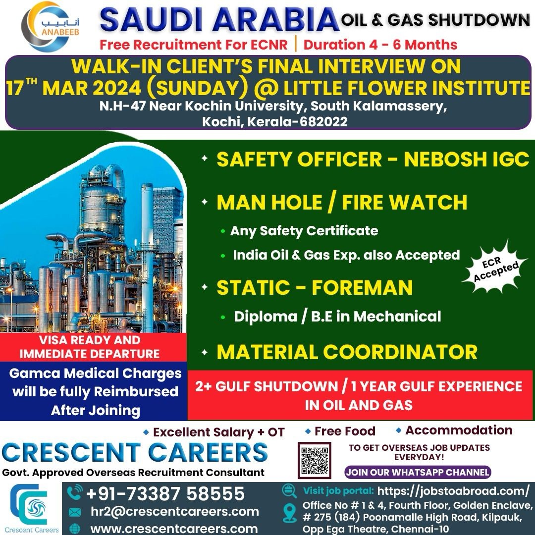 Disclaimer:- GCCWALKINS have no involvement in any recruitment process, This website just sharing job vacancies & interviews from various sources. Applicants are advised to research the bonafides of the prospective employer independently. We do NOT endorse any requests for money payments and strictly advice against sharing personal or bank related information. If you suspect any fraud or malpractice, email us at gccwalkins@gmail.com