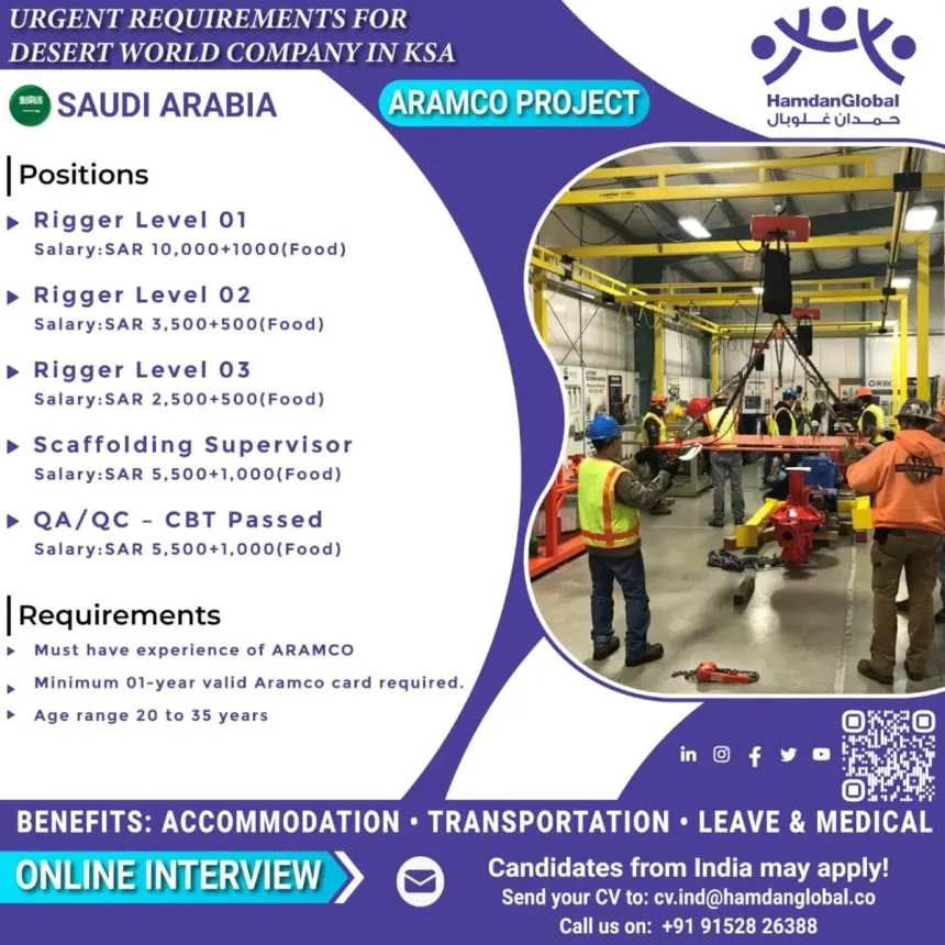 Desert world company Saudi Arabia job vacancy - Aramco Project