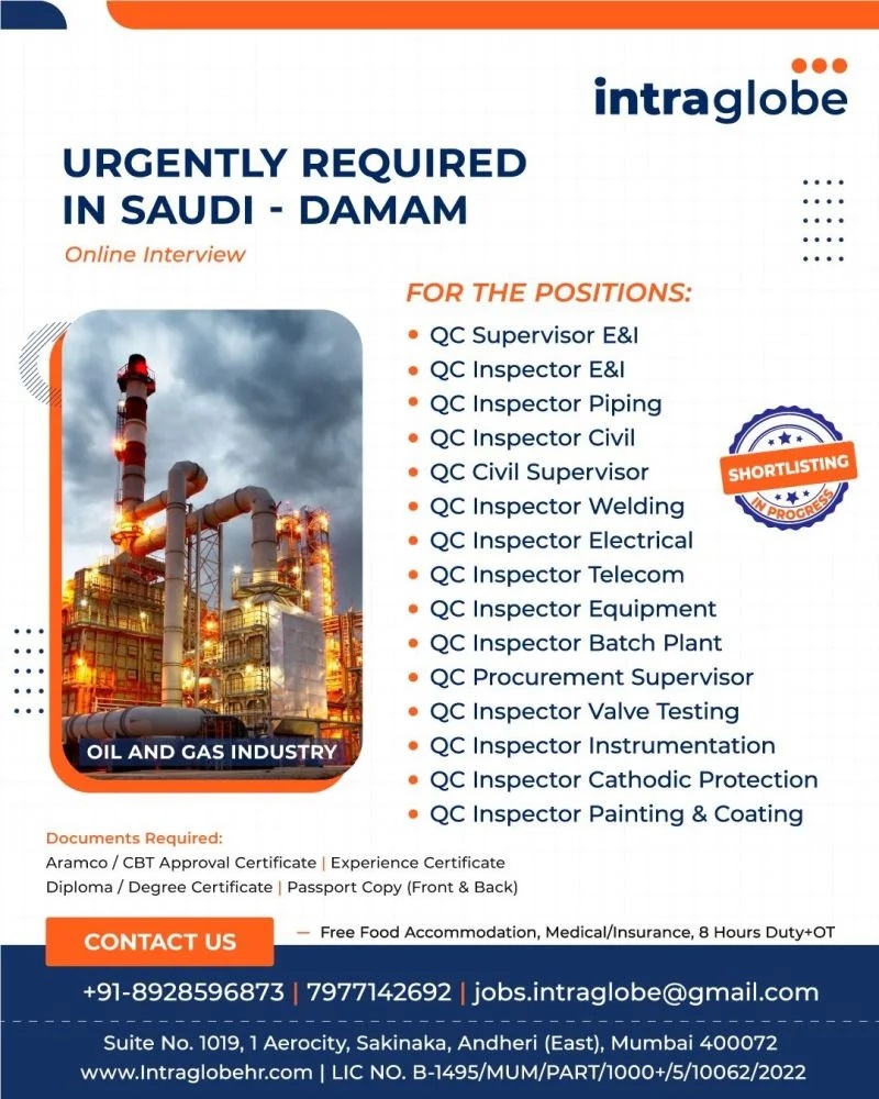 QC Inspector jobs in Saudi Arabia 2024 - Urgently required