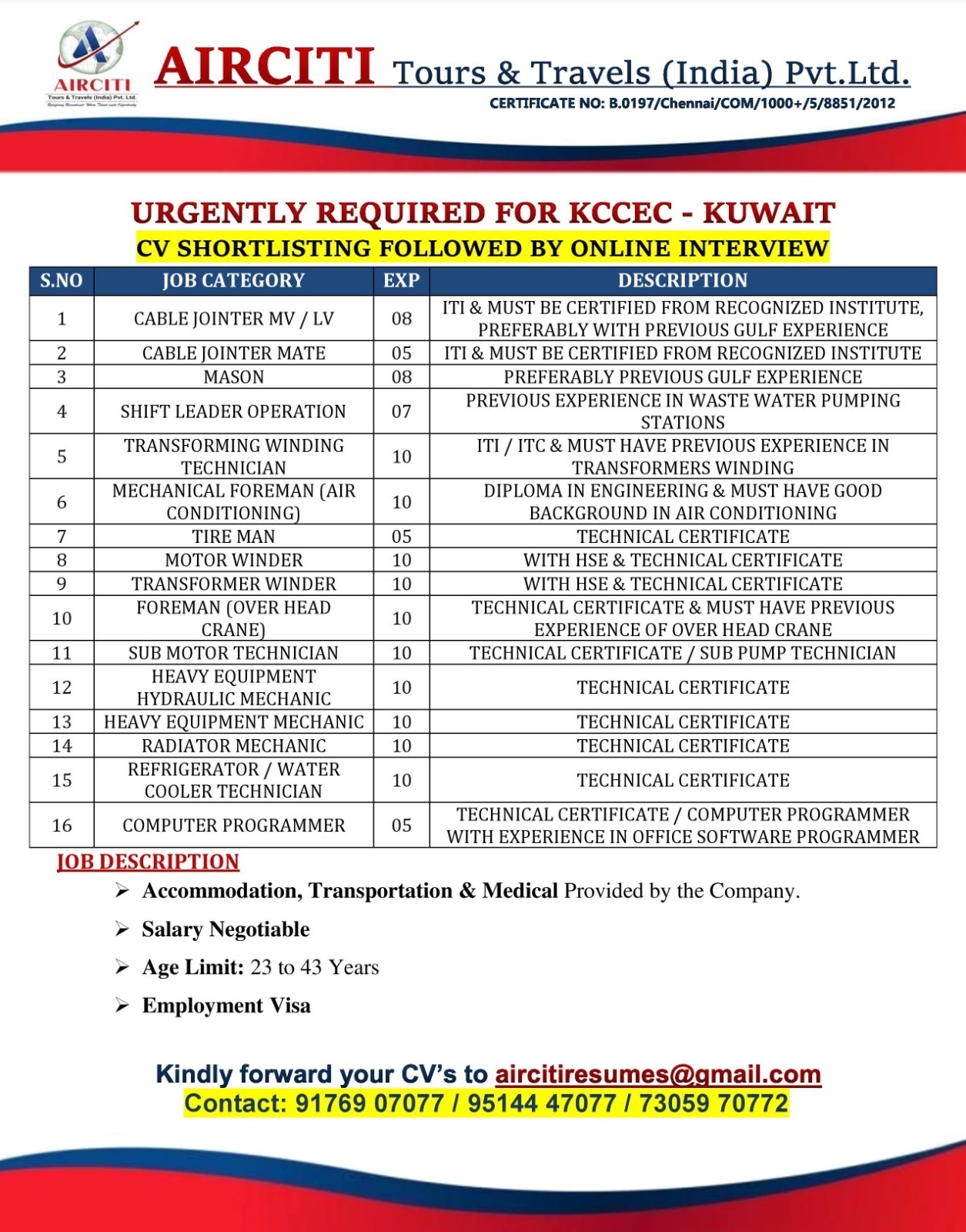 Email : aircitiresumes@gmail.com / Contacts : 9176907077, 9514447077, 7305970772