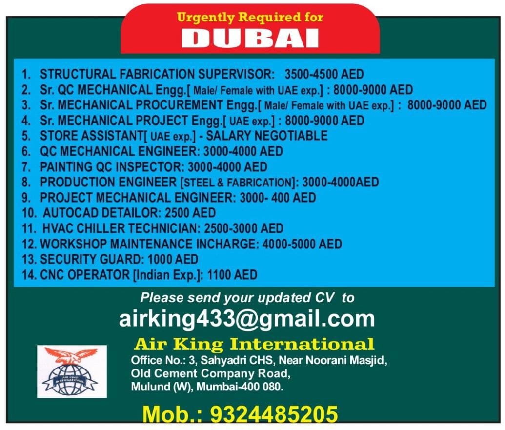 Urgently required for Dubai