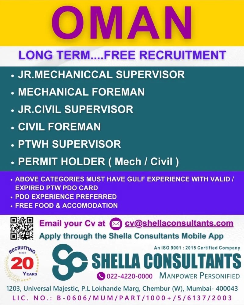 Free recruitment to Oman - Long Term