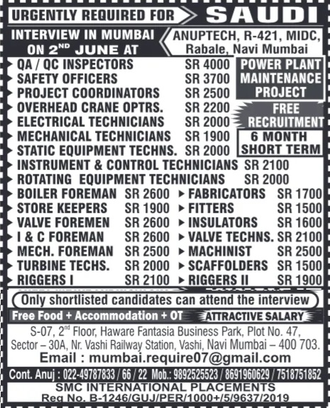 Free recruitment for Saudi Arabia - Power Plant Maintenance Project