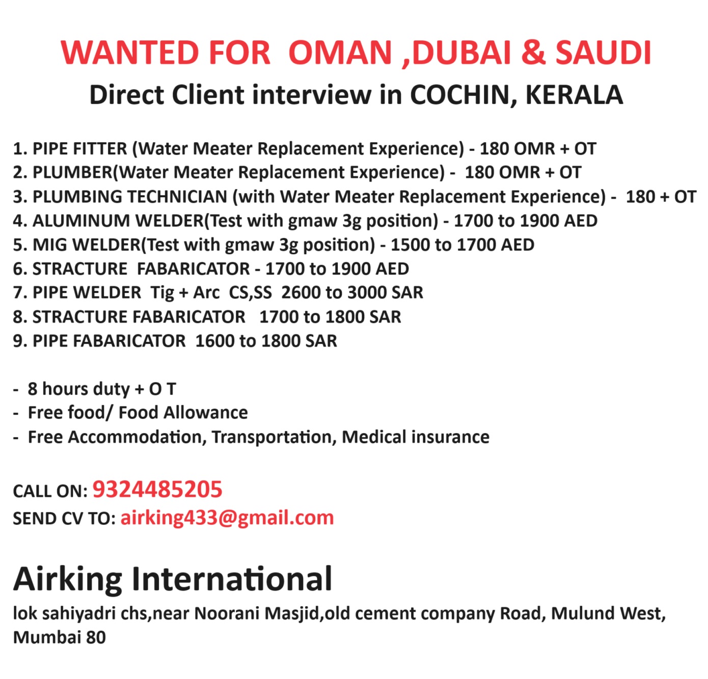 Disclaimer:- GCCWALKINS have no involvement in any recruitment process, This website just sharing job vacancies & interviews from various sources. Applicants are advised to research the bonafides of the prospective employer independently. We do NOT endorse any requests for money payments and strictly advice against sharing personal or bank related information. If you suspect any fraud or malpractice, email us at gccwalkins@gmail.com