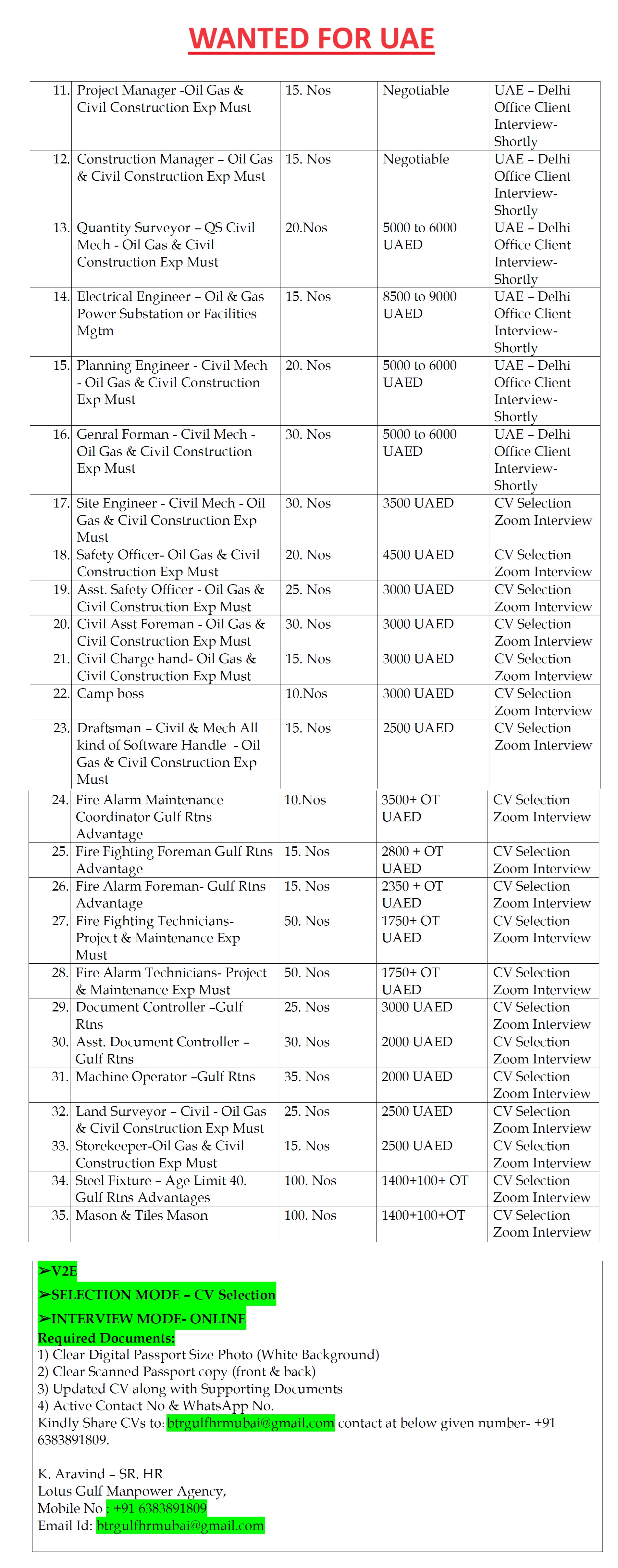 Email : btrgulfhrmubai@gmail.com / Contacts : 6383891809.