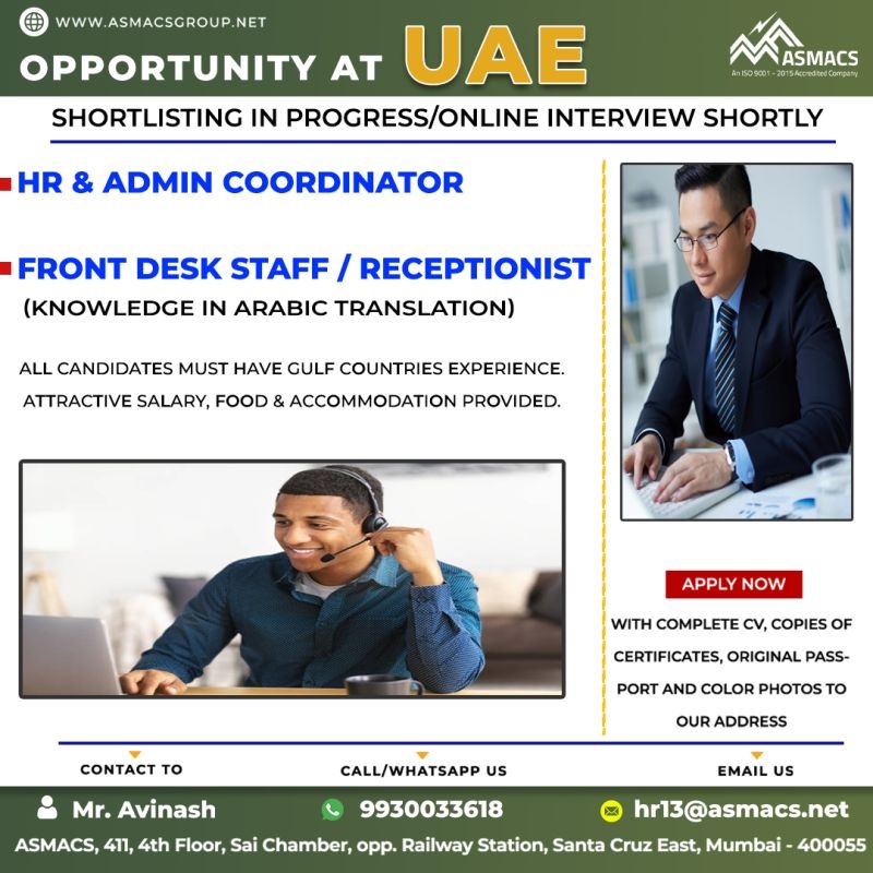 Email : hr13@asmacs.net / Contacts : Mr. Avinash - 9930033618