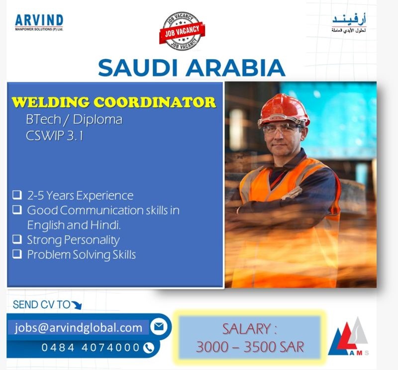 B. Tech / Diploma, CSWIP 3.1 with 2 to 5 years experience.