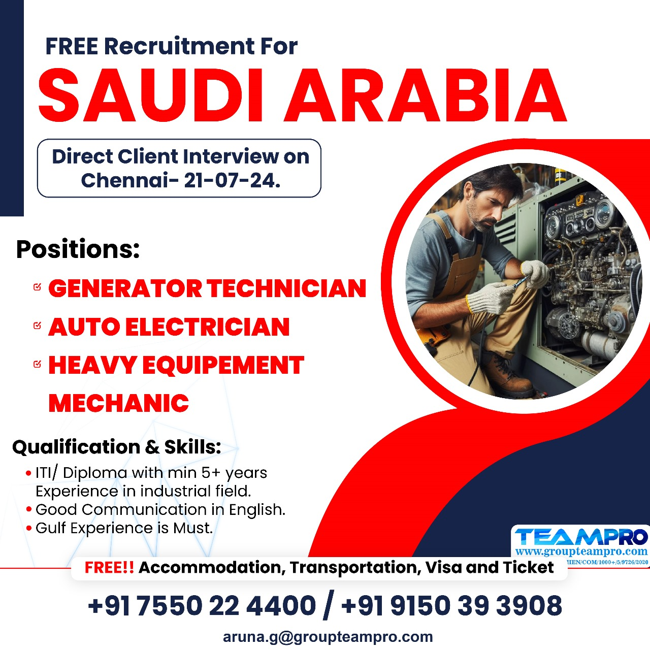 Email : aruna.g@groupteampro.com / Contacts : 7550224400, 9150393908