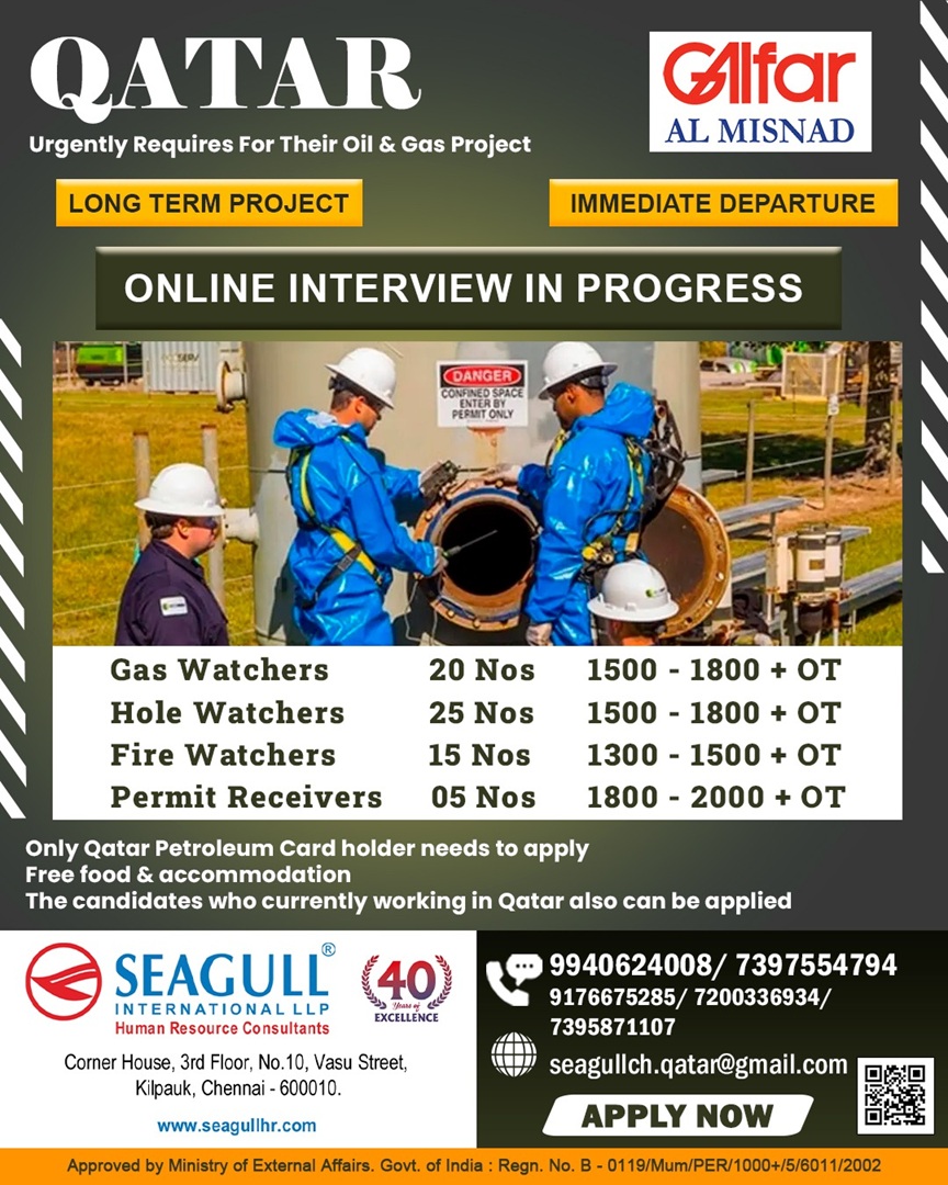 Disclaimer:- GCCWALKINS have no involvement in any recruitment process, This website just sharing job vacancies & interviews from various sources. Applicants are advised to research the bonafides of the prospective employer independently. We do NOT endorse any requests for money payments and strictly advice against sharing personal or bank related information. If you suspect any fraud or malpractice, email us at gccwalkins@gmail.com