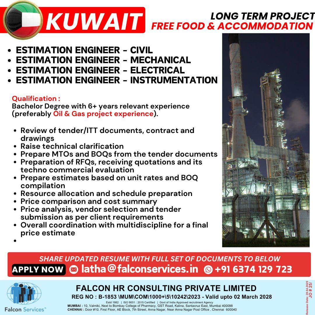 Estimation Engineers (Civil,Mechanical,Electrical,Instrumentation) |