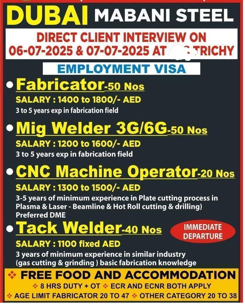 Walk-in Date: 06 July 2025, 07 July 2025,