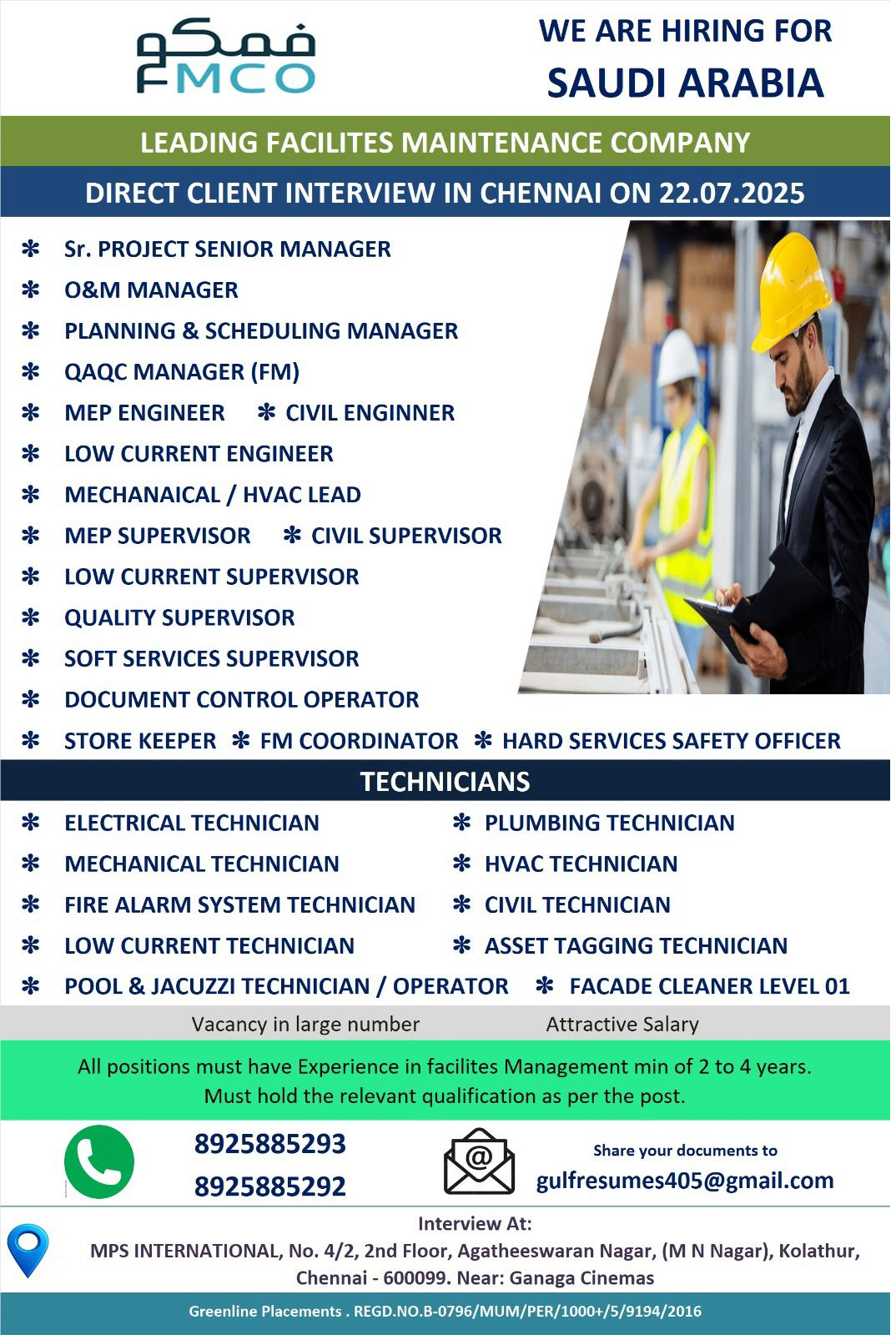 FMCO Saudi Arabia Jobs vacancy - Large recruitment