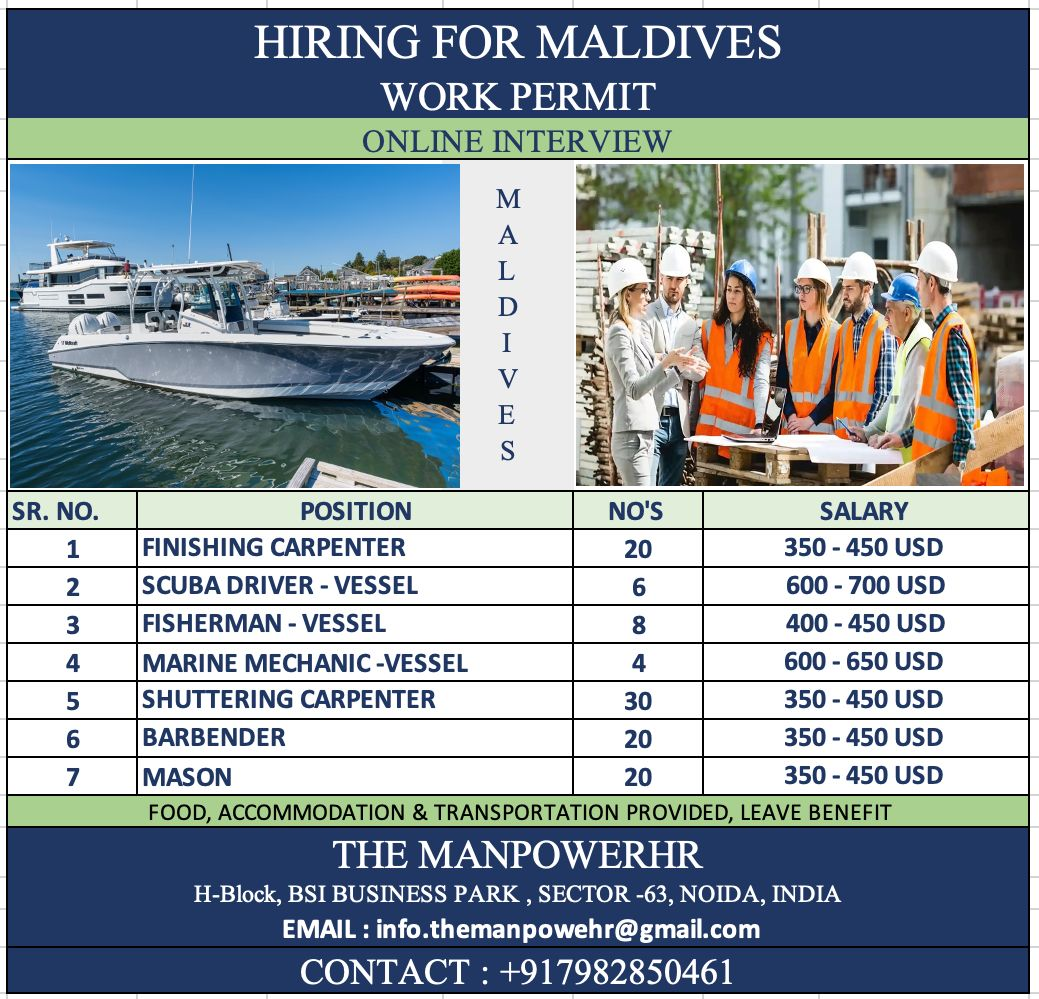 Urgent jobs in Maldives