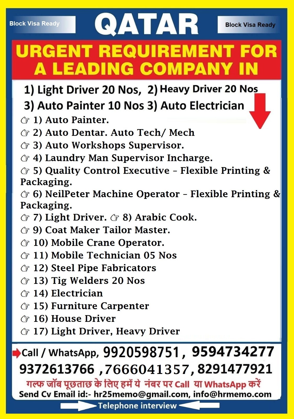 Send cv to: hr25memo@gmail.com