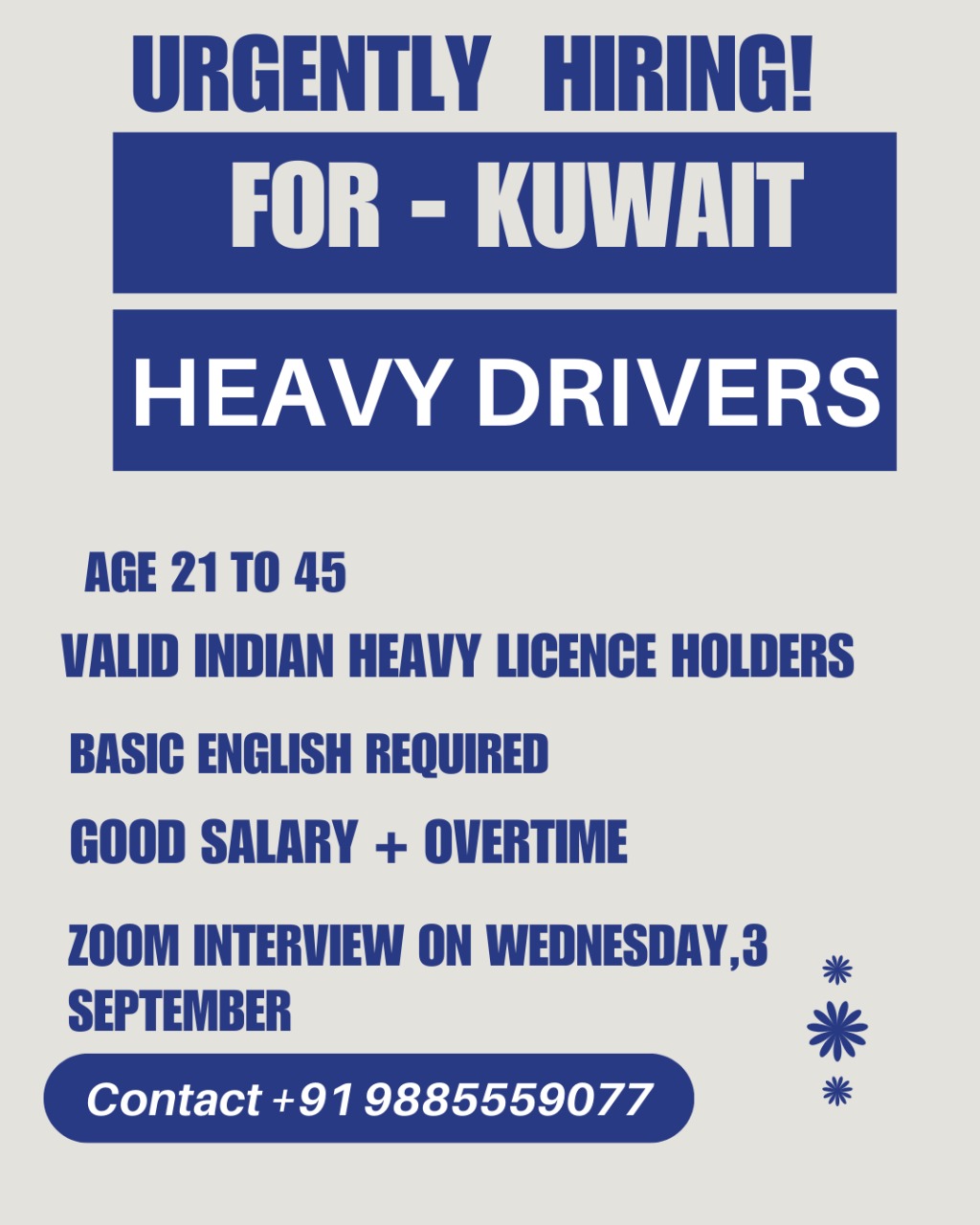 Kuwait heavy Driver job Vacancy 2025 - Urgent hiring