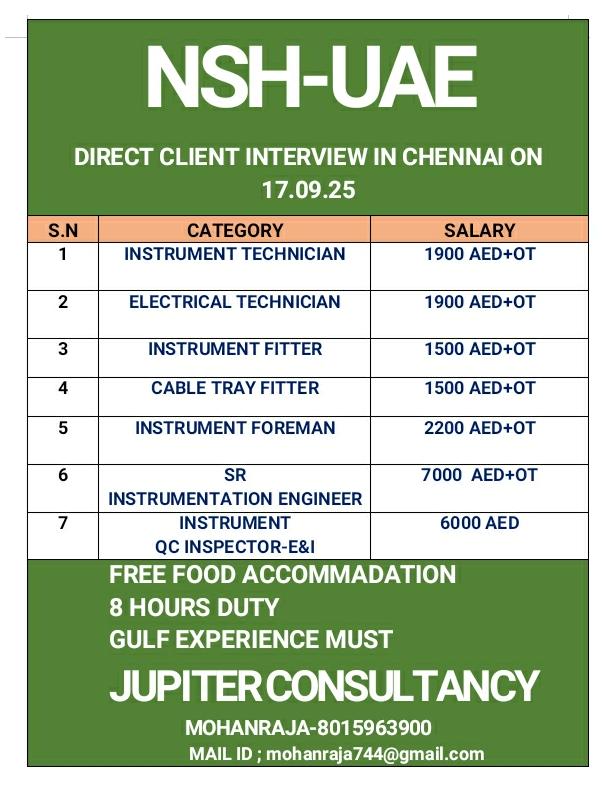 NSH UAE vacancies - Direct Client Interview