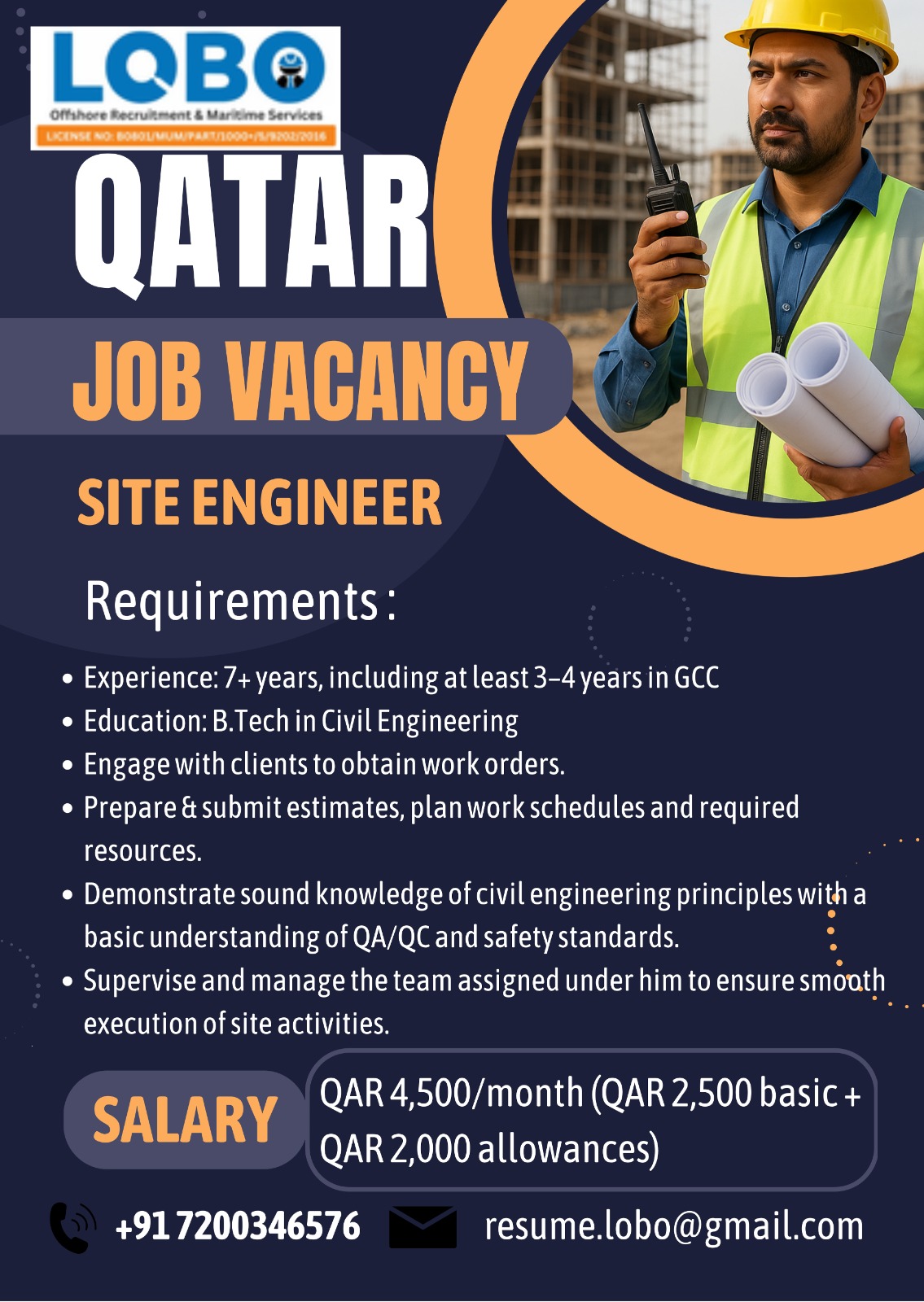 Urgent Civil Engineering jobs in Qatar - Site Engineer