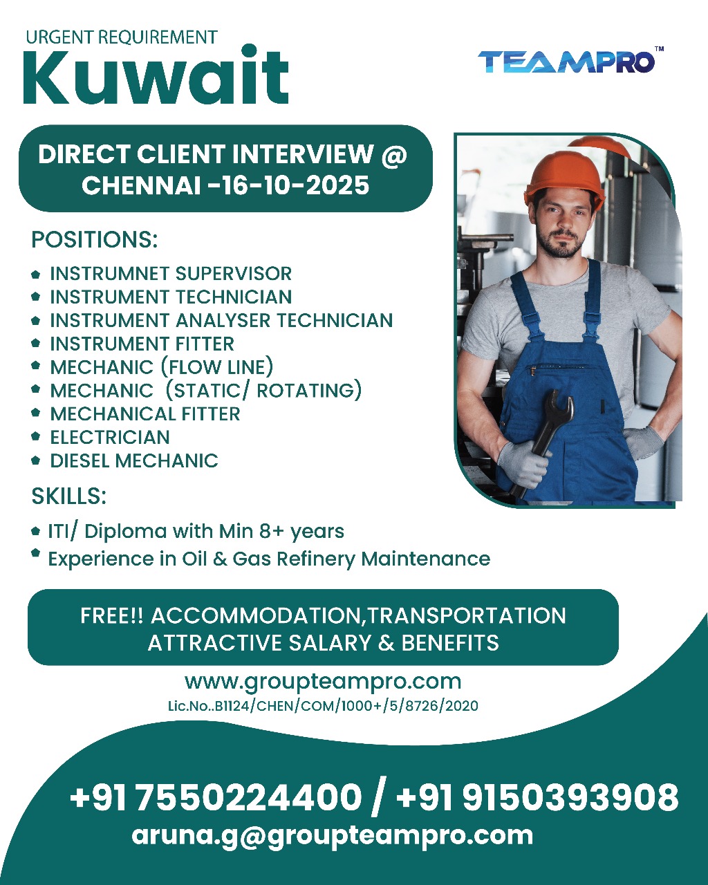 Disclaimer:- GCCWALKINS have no involvement in any recruitment process, This website just sharing job vacancies & interviews from various sources. Applicants are advised to research the bonafides of the prospective employer independently. We do NOT endorse any requests for money payments and strictly advice against sharing personal or bank related information. If you suspect any fraud or malpractice, email us at gccwalkins@gmail.com
