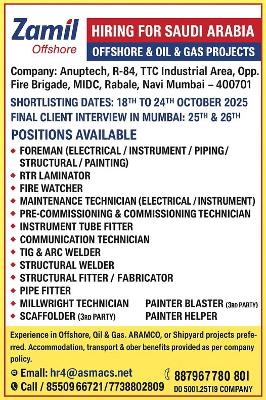 Experience in offshore, oil and gas ARAMCO or shipyard projects preferred