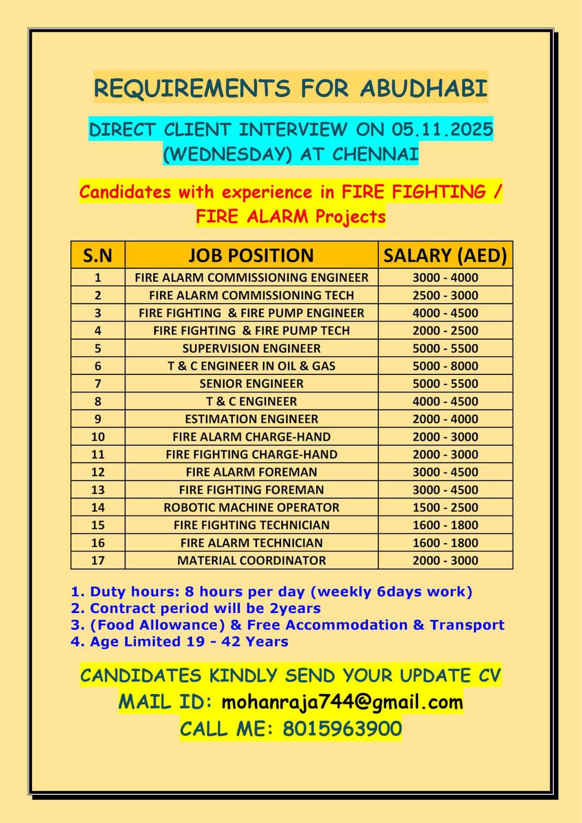 Urgent job vacancies in Abu Dhabi - Fire fighting & Fire Alarm Project